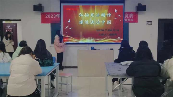 开展班级宪法宣讲。学校组织全校师生每个班级开展宣讲,宣讲内容涵盖宪法、刑法、民法等相关法律知识。通过线上宣讲和现场问答,激发了师生学习宪法的兴趣,提高了宪法知识水平。