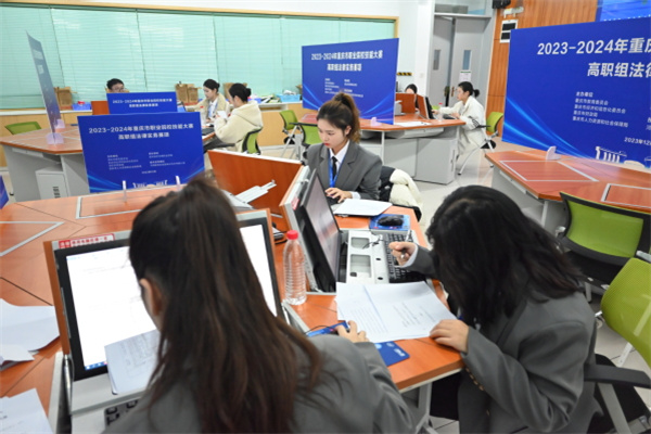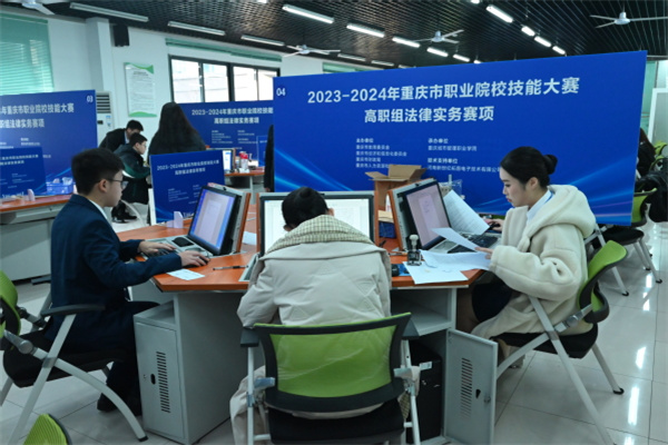 12月24-25日,由重庆市教育委员会、重庆市经济和信息化委员会、重庆市财政局、重庆市人力资源和社会保障局共同主办的2023—2024年重庆市职业院校技能大赛法律实务赛项在重庆城市管理职业学院举行。来自全市7所高职院校的13支队伍共39名选手通过法律基础知识、法律文书制作与档案管理、案件分析与汇报三个模块同台竞技,展现法律职业教育学生风采。