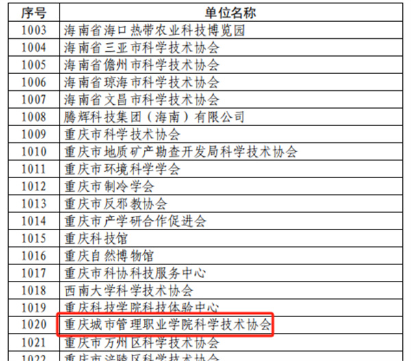 近日,中国科协办公厅发布了《关于对2023年全国科普日有关组织单位和活动予以表扬的通知》,重庆城市管理职业学院科协荣获“2023年全国科普日优秀组织单位”称号。这是学校首次被中国科协授予此荣誉,同批获此殊荣的重庆高校仅3所,重庆城市管理职业学院是唯一一所高职院校。