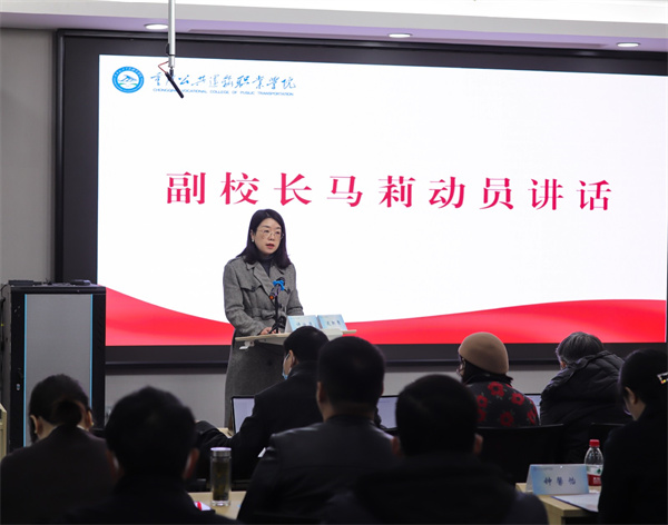 述职开始前,重庆公共运输职业学院马莉副校长从目的意义、重点内容、工作要求等方面,作动员讲话。