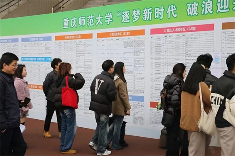 3月8日,重庆师范大学“逐梦新时代,破浪迎未来”2024年春季大型双选会在大学城校区第一运动场顺利举行,重庆师范大学及兄弟高校万余名毕业生踊跃参与。