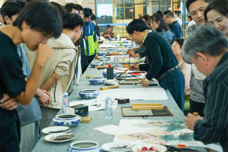 书画家们把对教育的大爱融入笔墨,把对重庆智能工程职业学院的祝福倾注笔端,创作出一幅幅精美绝伦的书画作品,吸引师生们驻足欣赏。活动现场的师生们认真观摩,虚心求教,随着佳作跃然纸上,赞叹之声不绝于耳,师生们无不感慨艺术家们深厚的笔墨功底和胸有成竹的艺术气度。