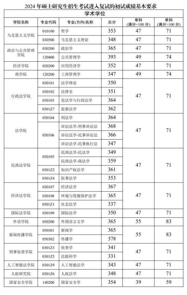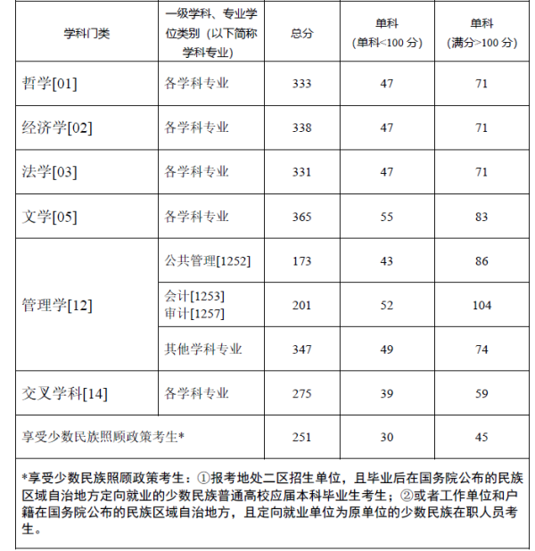 教育部《2024年全国硕士研究生招生考试考生进入复试的初试成绩基本要求》(A类考生)如下:(以下简称“进入复试成绩基本要求”)