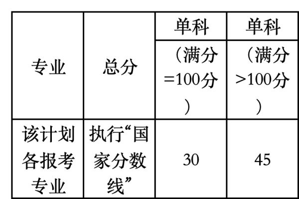表2:“退役大学生士兵”专项计划进入复试的初试成绩要求
