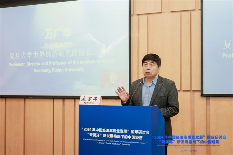 4月13-14日,“2024年中国经济高质量发展”国际研讨会在重庆成功举行,会议由重庆工商大学经济学院和复旦大学世界经济研究所联合期刊Journal of the Asia Pacific Economy举办。此次会议主题为“‘双循环’新发展格局下的中国经济”,来自中国、澳大利亚、俄罗斯、秘鲁、巴基斯坦等国家的50余名专家学者,围绕中国经济高质量发展、中国经济“双循环”等主题开展卓有成效的交流探讨。
