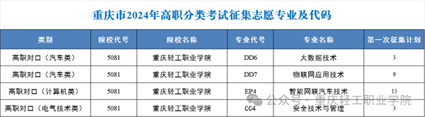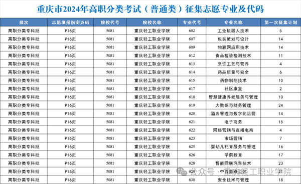 5081!重庆轻工职业学院2024年分类招?考试志愿征集公告