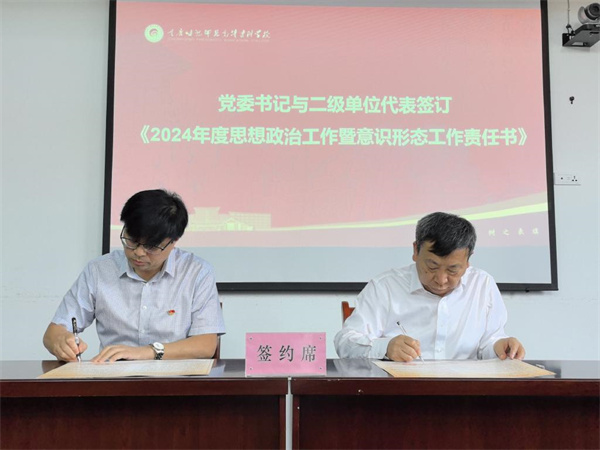 会上,党委副书记陈丕总结了学校2023年学校思想政治工作暨意识形态工作开展情况,并部署了学校2024年思想政治暨意识形态重点工作。党委书记刘灿国代表学校党委与二级单位代表签订《2024年度思想政治工作暨意识形态工作责任书》。