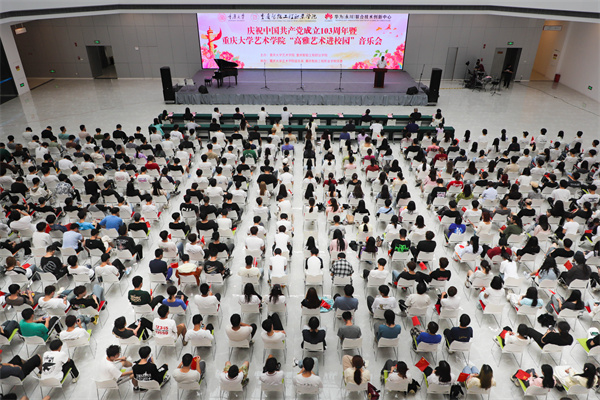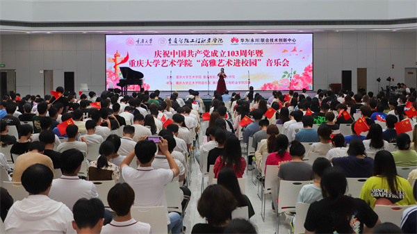 为庆祝中国共产党成立103周年,将高雅艺术引入校园,让美育教育沁润师生。6月25日下午,位于重庆永川的重庆智能工程职业学院“歌声颂党恩 唱响新时代”庆祝建党103周年音乐会隆重举行。重庆大学艺术学院“‘音’你而美,‘育’见未来”高雅艺术走进该校,与重庆智能工程职业学院师生以歌会友,共同编织了一幅幅动人的音乐画卷,感悟初心使命、汲取奋进力量。