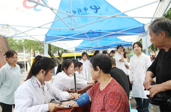 在“健康同行,守护乡村每一家”服务站,来自重庆智能工程职业学院智慧健康学院的学生们为前来咨询的居民开展血压、血糖、心率等检测和推拿按摩等服务,增强了社区广大群众对自身健康的关注,引导大家以科学的态度了解和学习健康知识。
