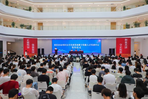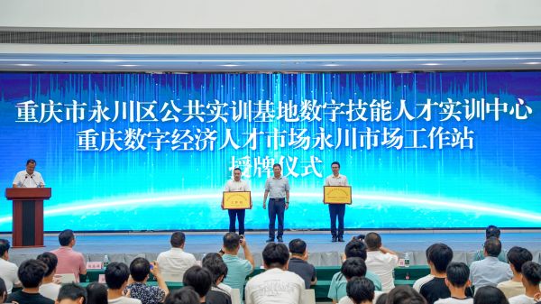 7月5日,重庆市永川区人力资源和社会保障局、重庆智能工程职业学院、重庆赛菱斯智能装备有限公司三方合作共建“重庆市永川区公共实训基地数字技能人才实训中心”签约授牌仪式举行,开启“政校企”深度融合共同培养高水平“数字工匠”新篇章。与此同时,“重庆数字经济人才市场永川市场工作站”在重庆智能工程职业学院揭牌。