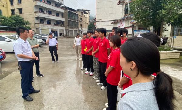 重庆科技职业学院党委书记、督导专员邓泄瑶等校领导实地观看了志愿者们正在进行的美育课程,以及住宿和厨房,并对实践团的衣食住行和安全等相关问题进行了询问。