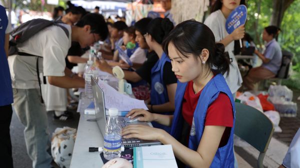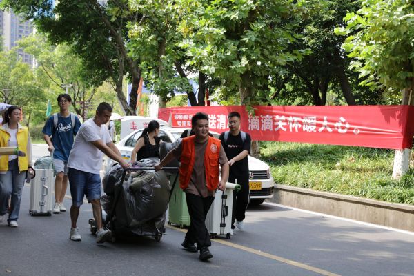 车站接待、交通引导、搬运行李、物资领取、报到指引、沿路问询……身穿各色马甲的700余名志愿者穿梭在骄阳下,奋战在迎新各条战线上。从清晨到夜晚,一趟趟往返,志愿者们声音嘶哑、衣服湿了又干干了又湿,始终面带微笑、耐心热情,为新生和家长排忧解难,让大家如沐春风,感受到来自家人般的温暖。其中,特设的党员志愿服务岗向新生开展入党知识介绍,引导新生关注学校官方微信、抖音等新媒体账号,用心用情为新生提供服务和帮助,让新生感受到党组织的温暖和关怀。同时,10余辆小轿车组成爱心车队穿梭于校园,为新生免费运送行李物资,获得新生一致好评。