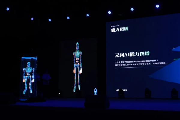 数字主持人交交报幕了四大精彩节目。首先是由数字主持人通过PPT展示125门MR全息课程,这些课程涵盖了多个学科领域。通过生动的案例和实际演示,数字主持人展示了全息技术如何在三维空间中呈现知识内容,以及如何通过交互式学习激发学生的学习兴趣和创造力。接着是学生与数字人进行“知行合一”跨时空演讲,展示了数字技术如何帮助学生身临其境地理解和应用知识。第三个节目是AI特效表演“现在的我和三年后的我”,展示了AI技术在个性化教育中的潜力。最后,数字主持人交交邀请全体新生挥舞双手,共同“唱跳”,结束今晚这场盛大的科技盛宴。