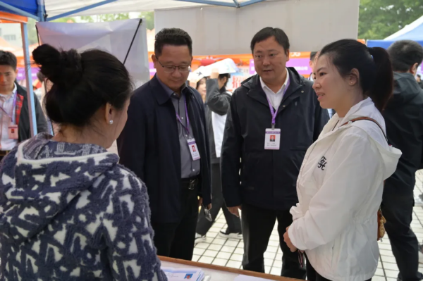 重庆市学生就业与创新创业服务中心相关负责同志对双选会的组织筹备工作给予了充分肯定,并与用人单位就企业概况、招聘需求、薪资水平、简历收集以及现场面试情况进行了了解。
