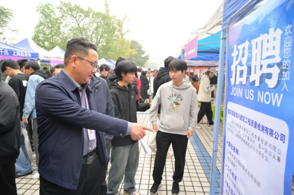 为深入贯彻落实党中央、国务院关于做好高校毕业生就业工作决策部署,积极搭建毕业生与用人单位双向选择对接平台,全力做好2025届毕业生就业工作,推动重庆交通职业学院毕业生高质量充分就业,11月8日上午,重庆市2025届普通高校毕业生送岗位进高校双选活动(江津专场)在重庆交通职业学院交工楼广场成功举行。重庆市学生就业与创新创业服务中心相关负责同志,重庆交通职业学院党委书记、督导专员张俊、校长助理张毅到现场指导工作。学生处以及各学院主要负责人、毕业班辅导员来到双选会现场与用人单位洽谈,指导、推荐毕业生应聘。