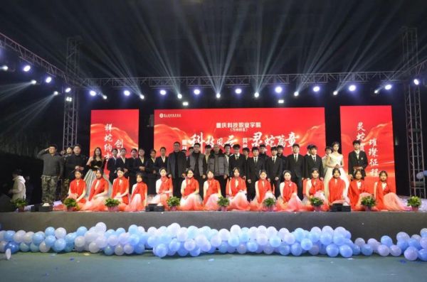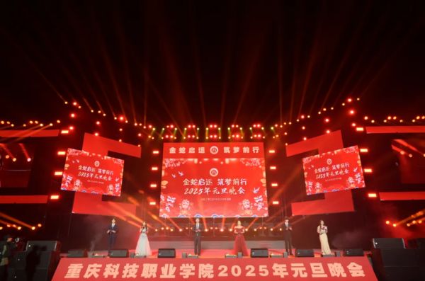 2024年12月26日,重庆科技职业学院万州校区和双桥校区同时举办了盛大的2025年元旦晚会。在双桥校区,晚会在学校物业安保团队——摇滚乐队的暖场秀中拉开帷幕。王校长致辞后,灯光秀《星辰之舞》、开场歌舞《幸福中国一起走》等精彩节目陆续上演。特邀嘉宾山野带来的《一个人的北京》和《男人花》两首歌曲,更是将晚会气氛推向高潮。学生们带来的爵士舞《永恒》和舞蹈《千手幻梦·人机共舞》,以及情景合唱《祖国颂》,展现了学校师生的多才多艺和青春活力。最后,全体演职人员合影留念,为晚会画上了圆满的句号。