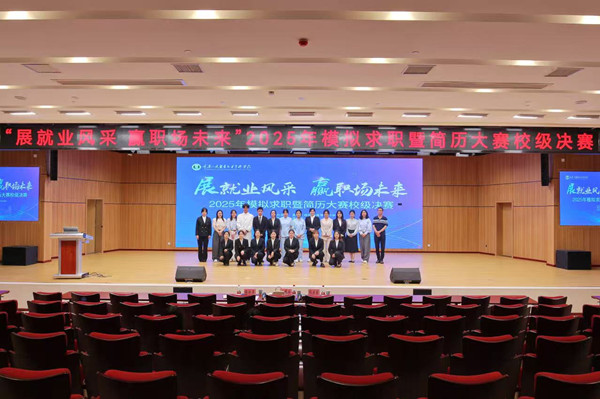 决赛分为简历初评、职业风采展示和评委问答三个环节,全方位、多维度地考察选手的简历制作水平、临场应变能力以及职业素养。比赛中,选手们按抽签顺序依次上台,利用自我介绍和PPT展示的方式,将自身亮点与求职意向紧密结合,分享不同的实践经历与职业理想。通过生动翔实地讲述,选手们充分展现出自己的沟通能力、应变能力和强烈的职业热情。在模拟面试环节,评委们结合本单位用人需求,模拟真实职场招聘场景,提出了一系列极具挑战性的问题。选手们自信从容,凭借扎实的专业知识与良好的沟通能力,从容应答。经过激烈角逐,何梁同学凭借优异表现荣获一等奖,杨馥瑜等3名同学荣获二等奖,王泓鳕等5名同学荣获三等奖,胡琼方等同学荣获优秀奖。