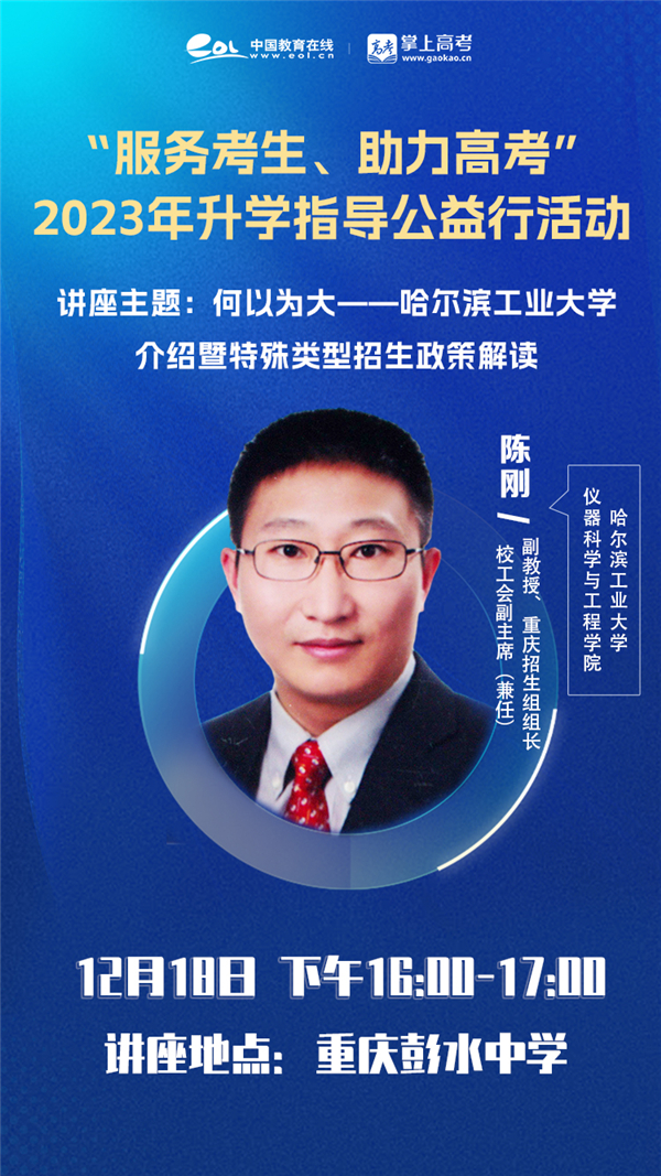 为促进全国高校与高中的有效衔接,使广大考生和家长能够更准确、更全面地了解高校今年的招生政策,必威体育登录网址 ·掌上高考启动“服务考生,助力高考”2023升学指导公益行活动。12月18日,特邀哈尔滨工业大学仪器科学与工程学院副教授、重庆招生组长陈刚走进重庆彭水中学,为重庆彭水中学、彭水一中以及彭水民族中学的高三学子带来了一场精彩纷呈的升学指导讲座。
