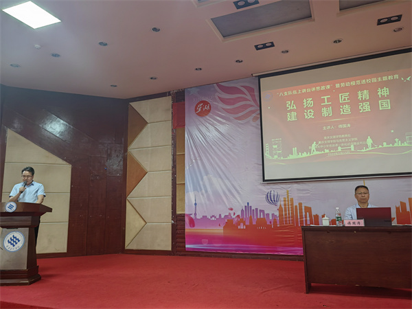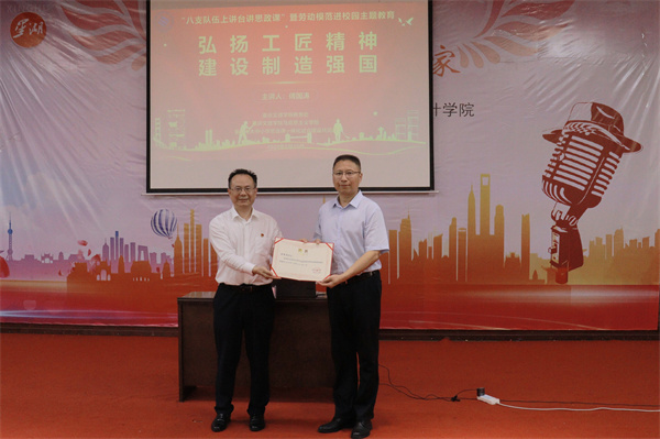为深入贯彻落实习近平总书记对学校思政课建设作出的重要指示精神,5月15日下午,重庆文理学院教务处、马克思主义学院、重庆市大中小学思政课一体化试点建设共同体联合举办的“八支队伍上讲台讲思政课”暨劳动模范进校园主题教育活动在博文馆文理大讲堂举行。全国人大代表、中国船舶集团首席技师傅国涛应邀讲授了题为《弘扬工匠精神 建设制造强国》的思政课。