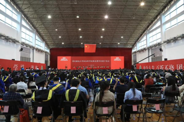 南山之巅群星璀璨,文峰塔下辉光日新。6月26日上午,重庆邮电大学2024年毕业典礼暨学位授予仪式在其校风雨操场举行,7283名毕业生参加了本次典礼。同时,重庆邮电大学官方微博、官方微信、官方视频号等平台也对本次毕业典礼进行了同步直播。