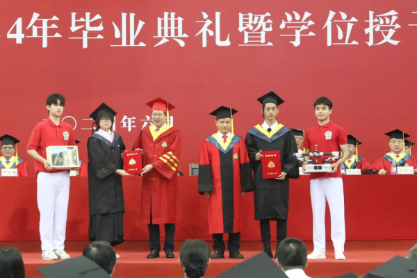 值得一提的是,典礼上,本科毕业生代表向母校赠送了毕业纪念作品,作品表现出了重庆邮电大学学子坚定的理想情怀和扎实的专业功底,表达了他们对母校的深情厚谊和美好祝福。重庆邮电大学先进制造工程学院学生吴宗昊向母校赠送了原创设计和制作作品:“知行号——远程同步机器人”;传媒艺术学院学生全可心向母校赠送了原创设计镂空雕刻美术作品“乐(yuè)之器”。重庆邮电大学党委书记李林,党委副书记、校长高新波代表学校接收了作品并颁发了收藏证书。