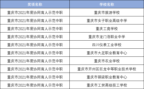 (重庆市“2021年度协同育人示范中职”获奖学校名单)