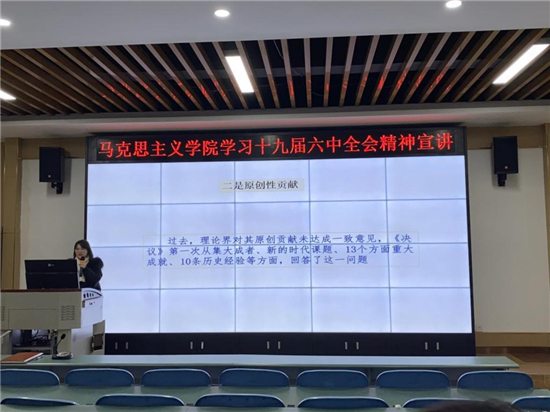 为深入学习贯彻党的十九届六中全会精神,12月1日,重庆工商职业学院马克思主义学院举办了党的十九届六中全会精神融入思政课教学研讨会在D201举行,全体思政课教师参加会议。