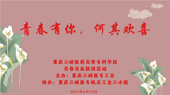 火红的六月,收获的季节。为了给广大青年朋友们搭建一个展示自我、交流感情、缔结友谊、寻觅知音的平台,6月25日,由重庆三峡医药高等专科学校工会主办、机关工会三小组协办的“青春有你•何其欢喜”重庆三峡医药高等专科学校青春交友联谊活动在万州区经开区“三峡漫城”成功举办。此次活动由校内单身青年教职工以及直属附属医院职工近30人参加。