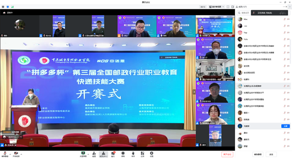 全国邮政快递职业教育教学指导委员会、国家邮政局职业技能鉴定指导中心、重庆市邮政管理局、上海寻梦信息技术有限公司、深圳市中诺思科技股份有限公司和重庆城市管理职业学院等有关领导出席开赛式。开赛仪式由重庆城市管理职业学院党委委员、副校长罗小秋主持。