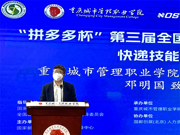 重庆市邮政管理局副局长杨夏致辞,全国邮政行业职业技术职业教育快递技能大赛,旨在培养大学生的创新意识和解决实际问题的能力,促进专业改革与实践教学相结合,提高专业人才培养质量。重庆市邮政管理局也高度重视行业人才队伍建设,与市人社局、市财政局共同推进邮政快递行业从业人员职业技能培训。希望参赛队以比赛为契机,共同推动邮政快递业转型升级再上新台阶。