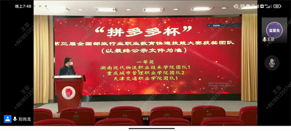 重庆城市管理职业学院副校长罗小秋宣布比赛开赛,大赛正式拉开序幕。据悉,大赛共设四个赛项:快递运营管理1+X 职业能力测评、快递数字化经营(博弈)、快递综合业务设计、快递综合作业实施。大赛为预赛和决赛两级赛制。预赛于2022年11月完成,考核项目为快递运营管理1+X 职业能力测评和快递数字化经营(博弈),总成绩前30名的团队进入决赛。受疫情影响,决赛分两阶段以在线方式进行,考核其中三个赛项。获得二等奖以上团队的参赛选手,经复核通过将获得快递运营管理1+X职业技能等级证书(高级)。经过大赛裁判组的认真评判,全国邮政行业职业教育快递技能大赛获奖名单由裁判长邱云线上公布。最终,湖南现代物流职业技术学院、重庆城市管理职业学院和天津交通职业学院夺得一等奖。