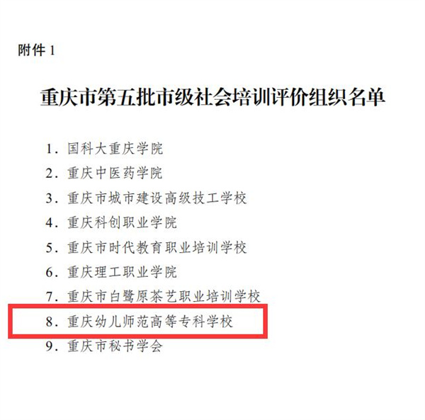 重庆幼儿师范高等专科学校获批市级社会培训评价组织